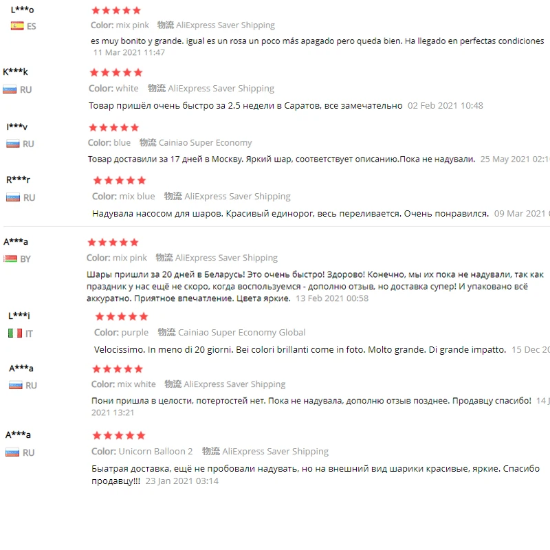 Страна: RU Color: Unicorn Balloon 1 Доставка: Saver Shipping 16.03.2021