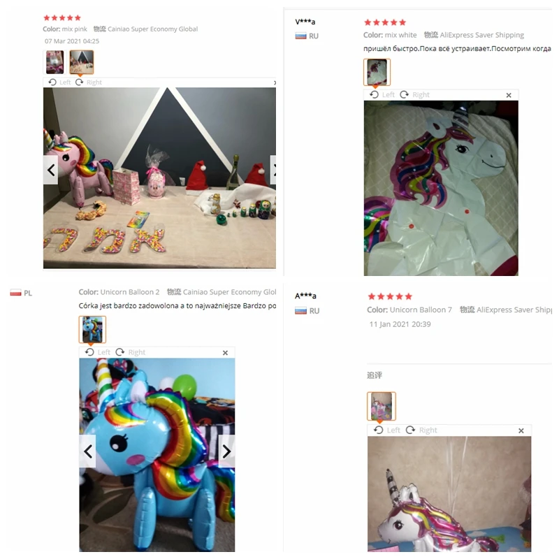 Страна: FR Color: Unicorn Balloon 7 Доставка: Cainiao Super Economy Global 16.03.2021
