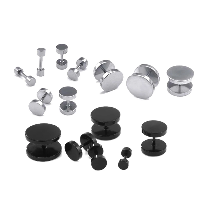 Классические черные серьги-гвоздики с гантелями, мужские и женские, в стиле панк, из нержавеющей стали, ювелирные украшения для вечеринок, 2020, размер 4-14 мм, дропшиппинг