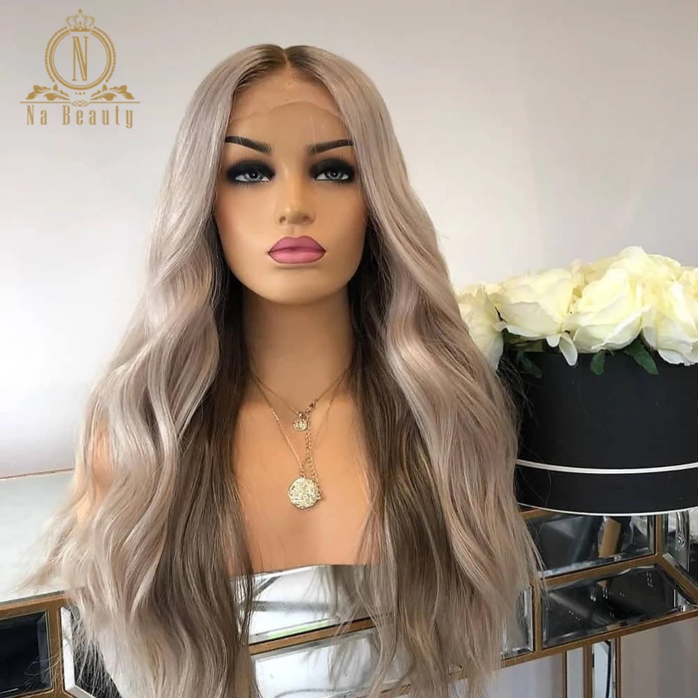 Серая ясень 13x4 HD прозрачный кружевной передний парик с волнистыми волосами Омбре цветные человеческие волосы на кружевной передний al парик из бразильских волос