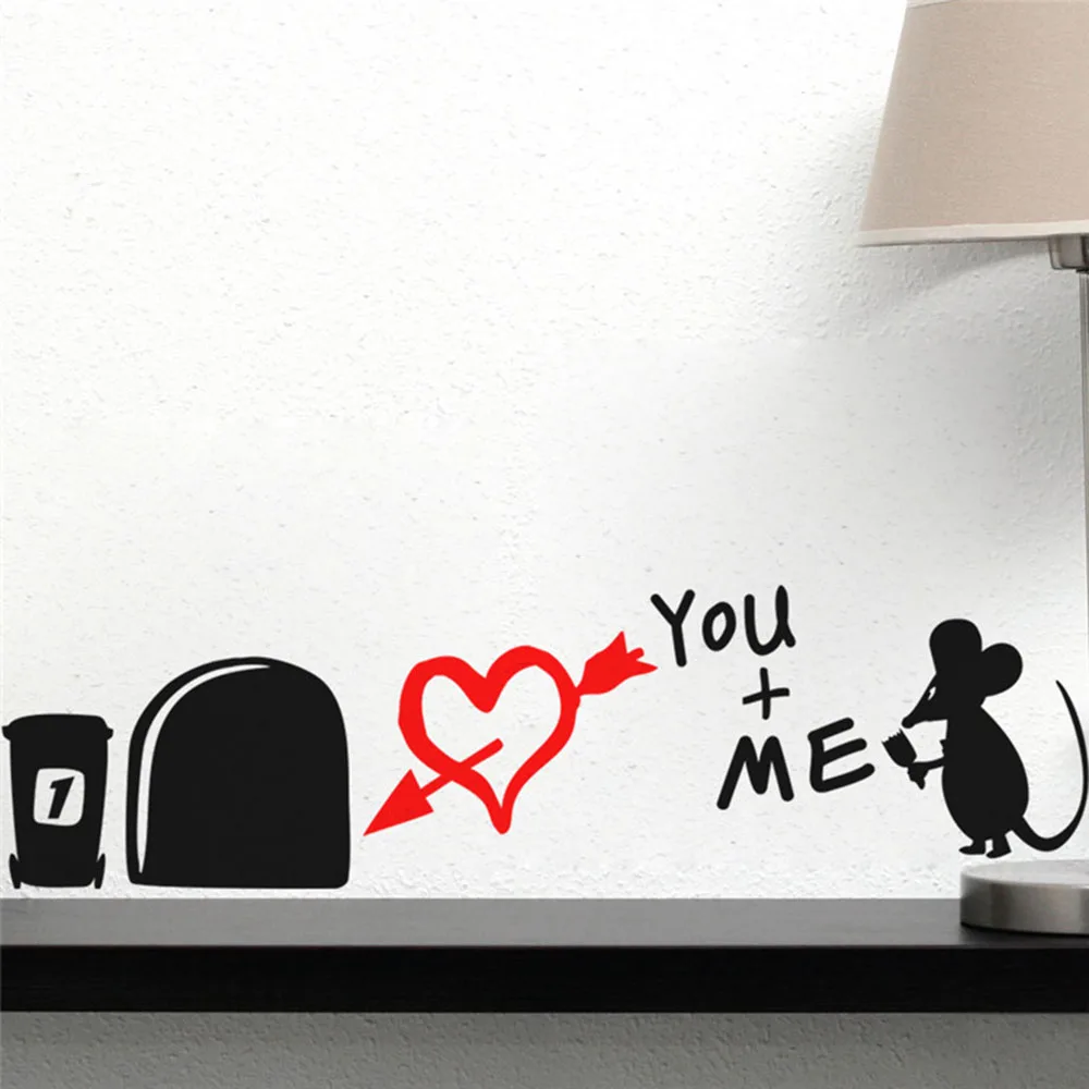 1 шт. 2022, забавные настенные наклейки с отверстиями для влюбленной мыши для детской комнаты, настенные наклейки, украшения для дома, винтажный постер, съемный