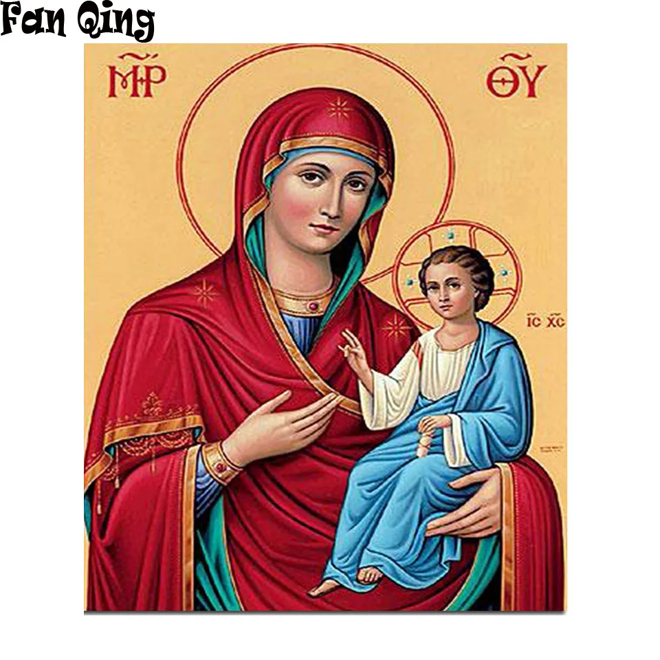 Полная квадратная дрель DIY алмазная живопись религиозная икона Алмазная вышивка картина крестиком Круглая Мозаика Девы Марии Иисуса