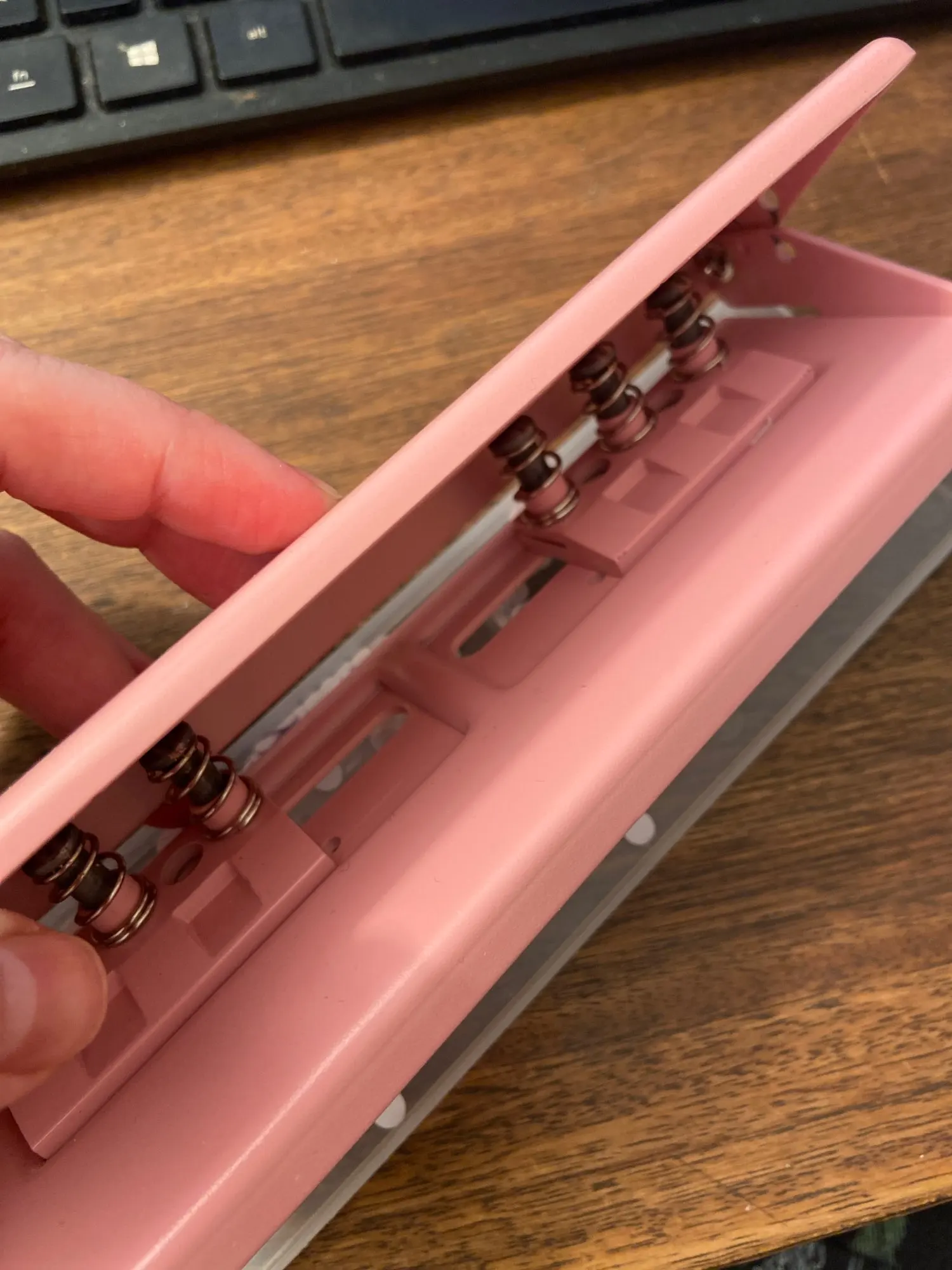 В восторге! Он сказал, что он прибыл 1 или 2 февраля и прибыл вчера 20 января. Это заняло неделю или около того! I didn't imagined This quality in such an economy product. Это здорово. Прочный (весит немного), красивый, я купил его в розовом, и он очень, очень красивый. Отверстие до 5 листов, но идеально. Вы можете положить топ в зависимости от размера листа, который кажется мне очень практичным. Кроме того, он движется механизмами регулировки отверстий. У меня есть дневник кольца, и это прекрасно! Я дал ему тысячу поворотов, которые я купил на случай, если он не адаптировался, и невозможно, чтобы он не адаптировался, потому что вы положили его как хотите! Супер доволен покупкой, продавец. Со всем!