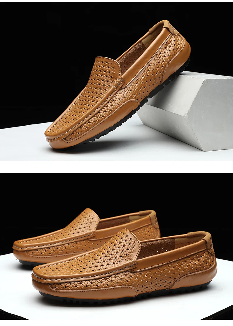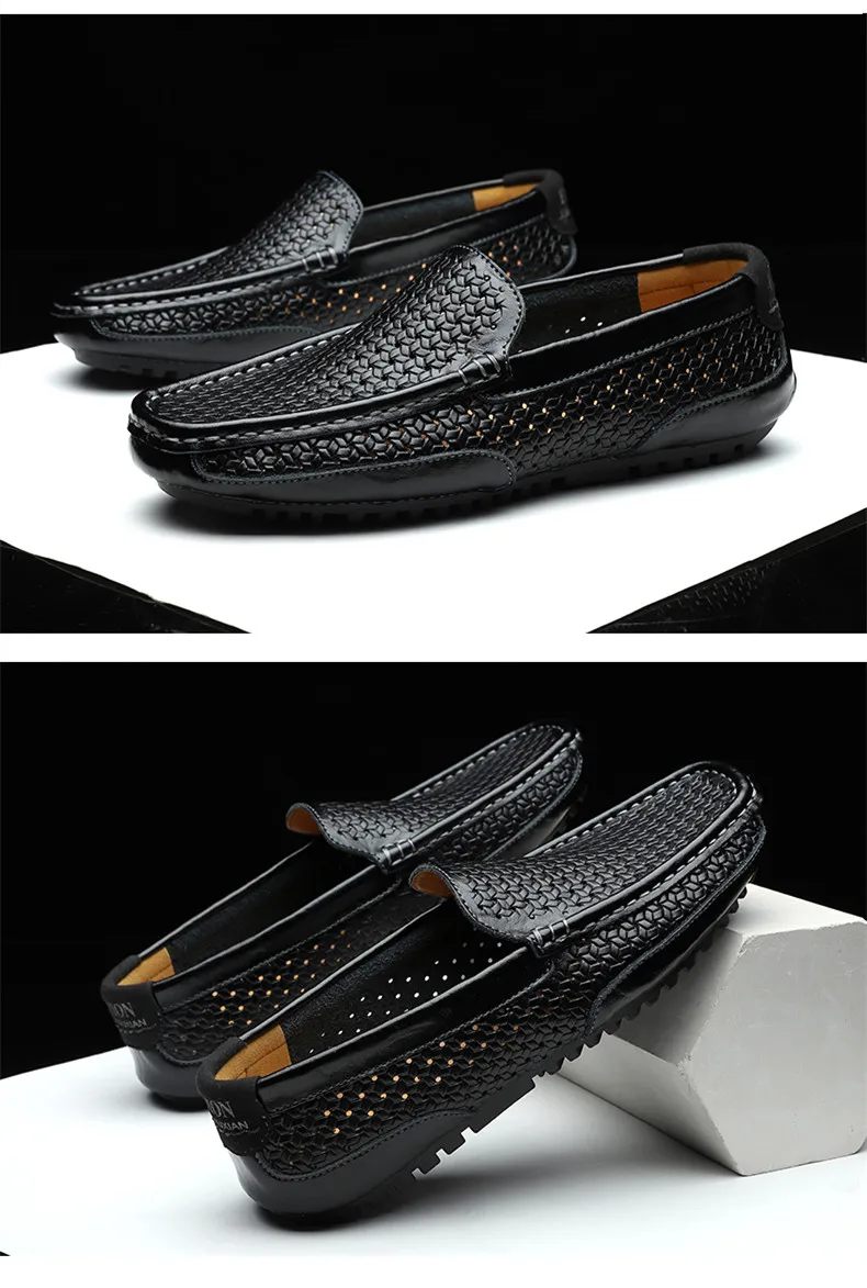 Мужские мокасины из натуральной кожи, дышащие Лоферы без шнуровки, повседневная обувь для вождения, лето, BTMOTTZ