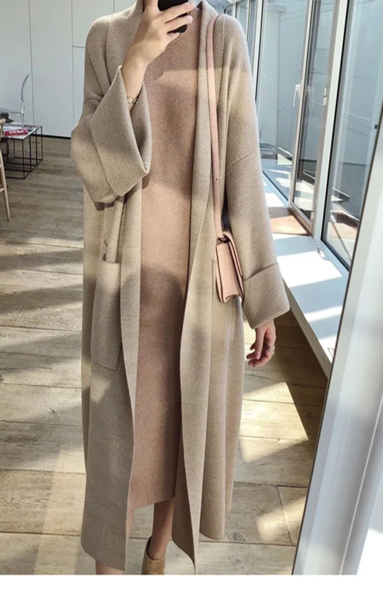 Женский шерстяной кардиган в полоску Leiouna, повседневный Свободный кардиган в стиле оверсайз с V-образным вырезом, вязаное пальто для зимы