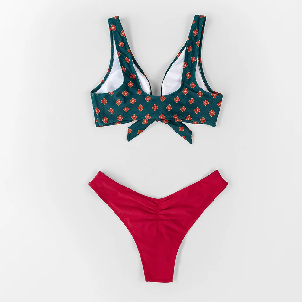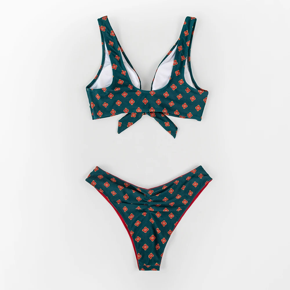 SEASELFIE сексуальные Цветочные стринги с V-образным вырезом, комплекты бикини, двусторонний купальник из двух частей, женские купальники 2022, пляжные купальные костюмы