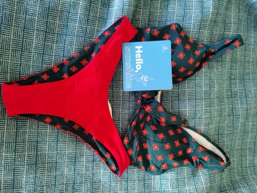 Купальник с двусторонними трусиками!) Пришел за полтора месяца в Беларусь. Упакован хорошо,но с размером немного не угадала. У меня размер xs, а в идеале было бы на размер больше. Хотя мне он маловат только в районе груди. Мои параметры 82-64-84 Качество отличное,придраться не к чему