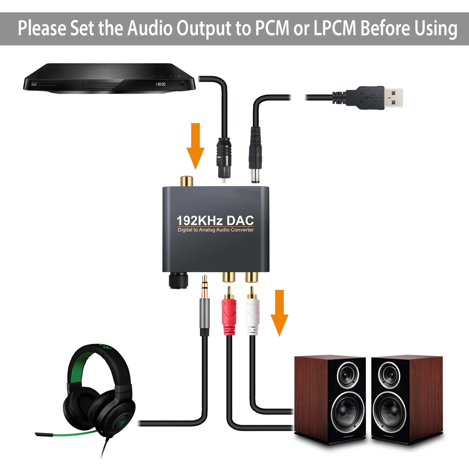 Адаптер несовместим с 5,1 канальным сигналом, таким как AC3, установите аудиовыход на PCM или LPCM перед использованием продукта.