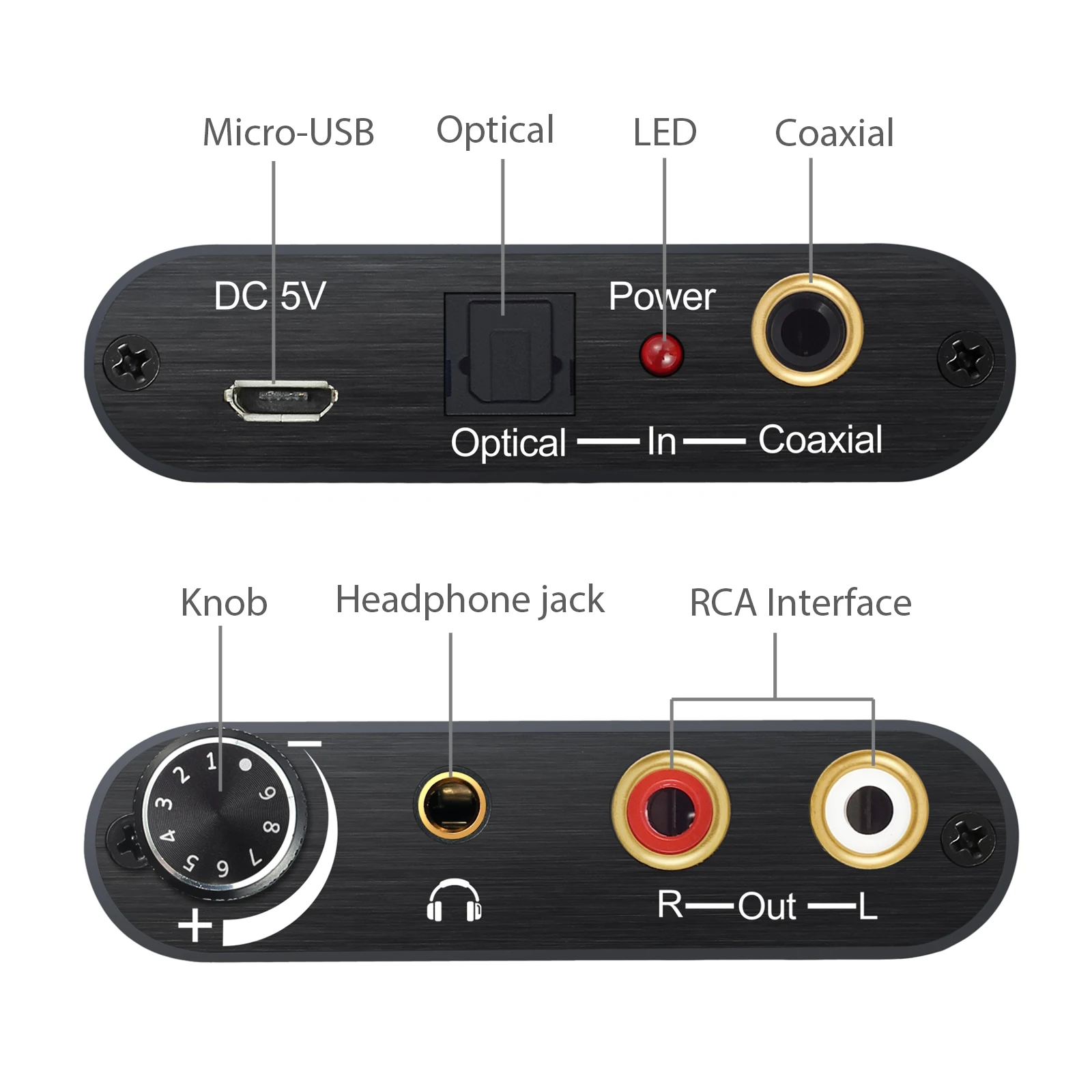 Этот декодер предназначен для профессиональной обработки аудиосигнала. Он может легко преобразовать коаксиальный или toslink-интерфейс в аналоговый аудиоинтерфейс RCA и 3,5 мм для наушников. Чип профессионального аудио усилителя и регулирующий переключатель громкости предназначены для прямого вождения наушников и регулировки выходного объема.