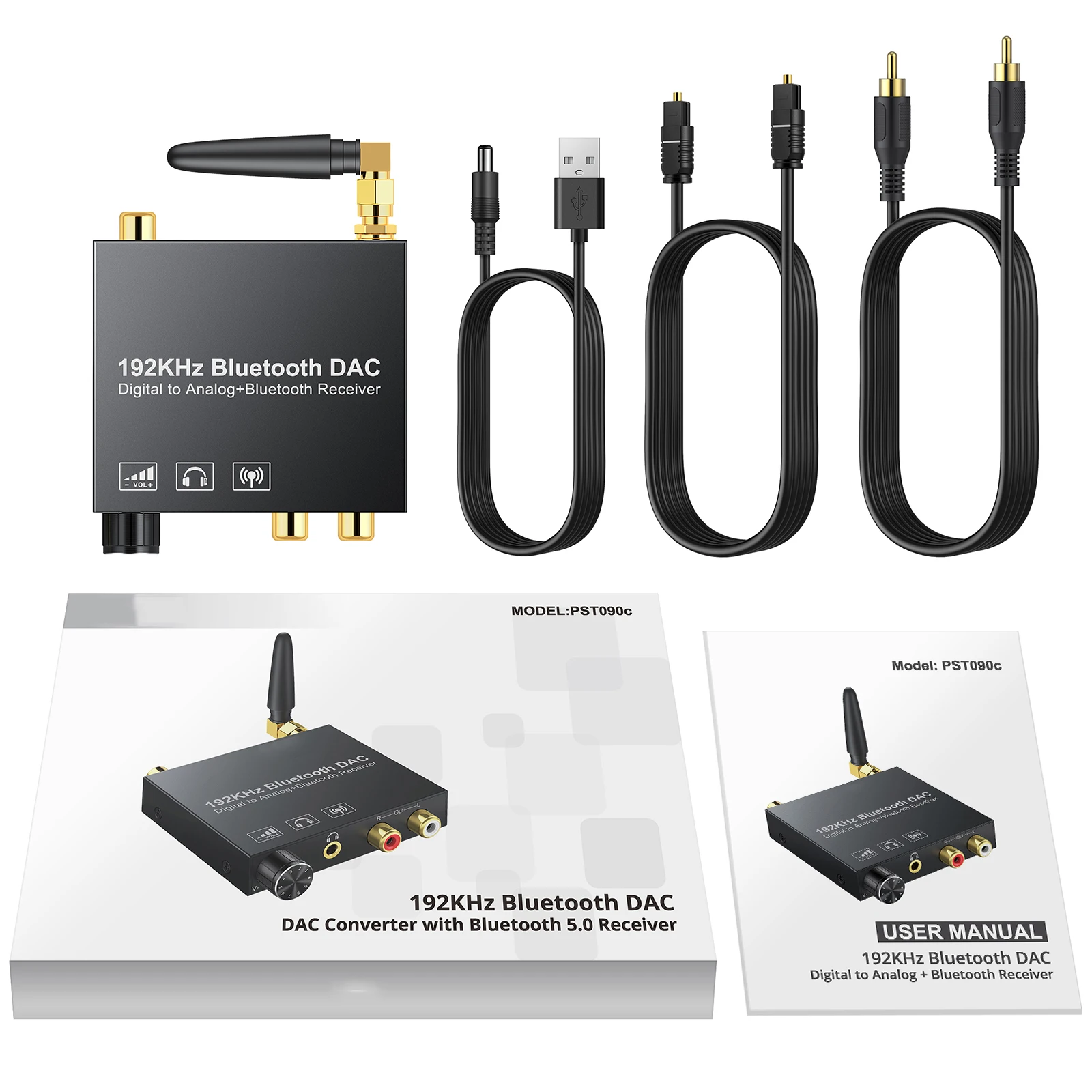 Цифро-аналоговый аудиоконвертер eSYNiC 192k с Bluetooth-совместимым приемником Toslink, коаксиальный, RCA, аудиоадаптер 3,5 мм, ЦАП