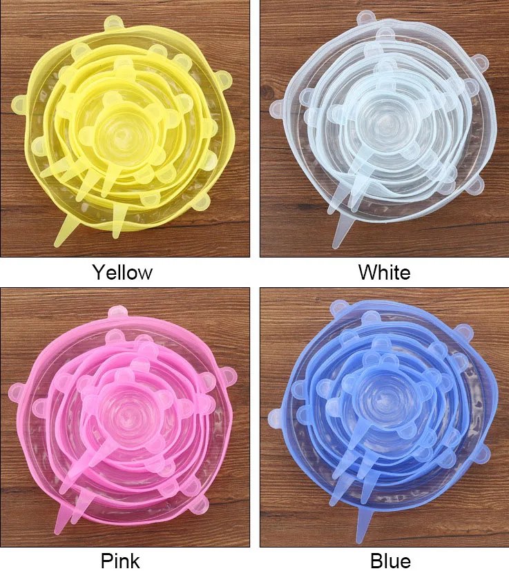 6 шт.компл. многоразовые силиконовые растягивающиеся крышки, гермет...