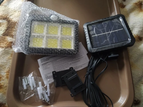 упаковка великолепная! соответствует описанию, доставлен в целостности и сохранности. проверен, работоспособность, датчик движения работает... немного тускло светит ( но возможно нужна под зарядка аккумулятора)