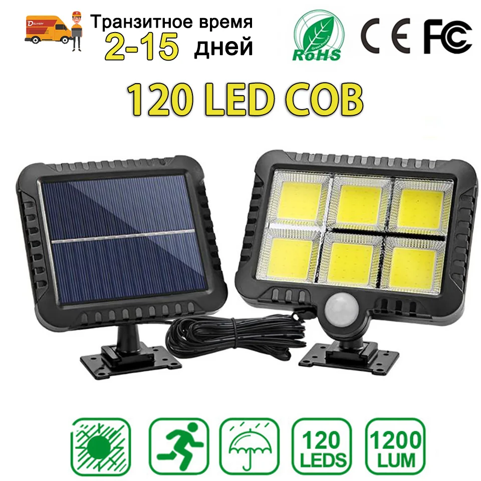 Светодиодный светильник на солнечной батарее 120COB, наружный датчик движения, водонепроницаемый светильник на солнечной батарее для улицы, дорожки, Уличный настенный светильник