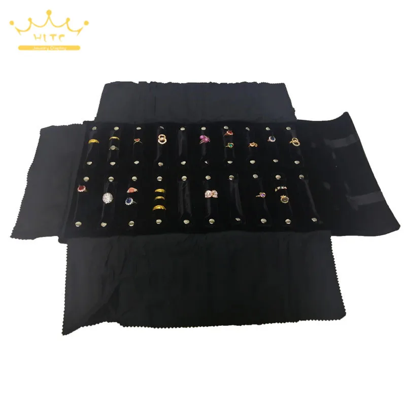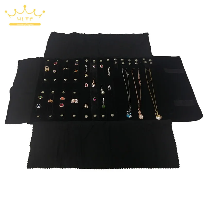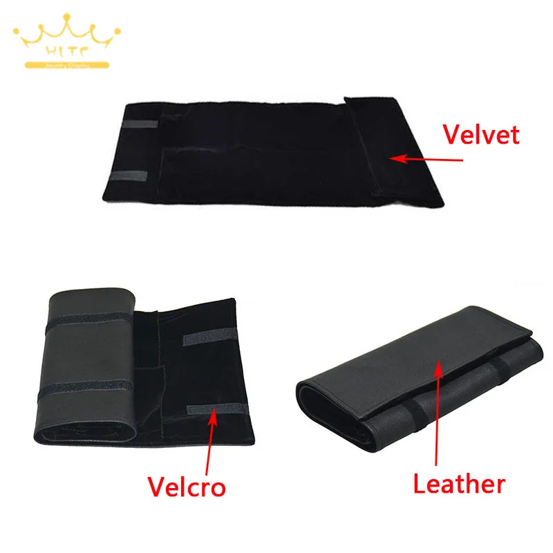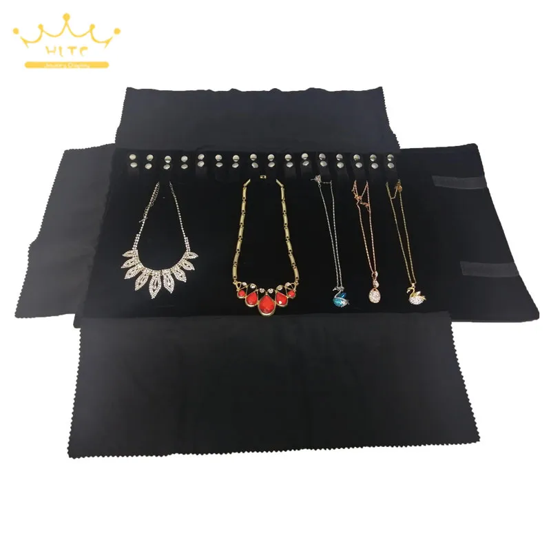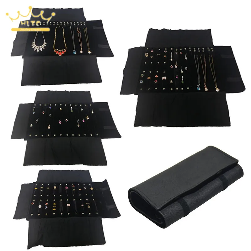 Ювелирные изделия упаковка мешочек для ожерелья ролл Органайзер сумка Кольцо Серьги бархат переноски черный кожаный держатель дисплея