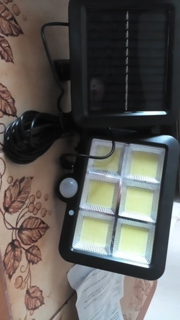 Уже при распаковке на матрице был замечен один бракованный светодиод, который светится более тускло и немного другого цвета. Надеюсь когда он окончательно перегорит, остальные в цепи продолжат работать... Светит данный фонарь не как прожектор, о довольно тускло. Я повесил рядом с дешевле в 2 раза фонарем на 120 соб диодов яркость примерно такая же. Но в отличие от него есть плюс... это то что довольно длинный провод и солнечную батарею можно разнести со светильником на расстояние. Считаю что для такого светильника цена завышена... Продавец очень долго не отправлял товар, но затем он за неделю прибыл в конечную точку, доставлен курьером.