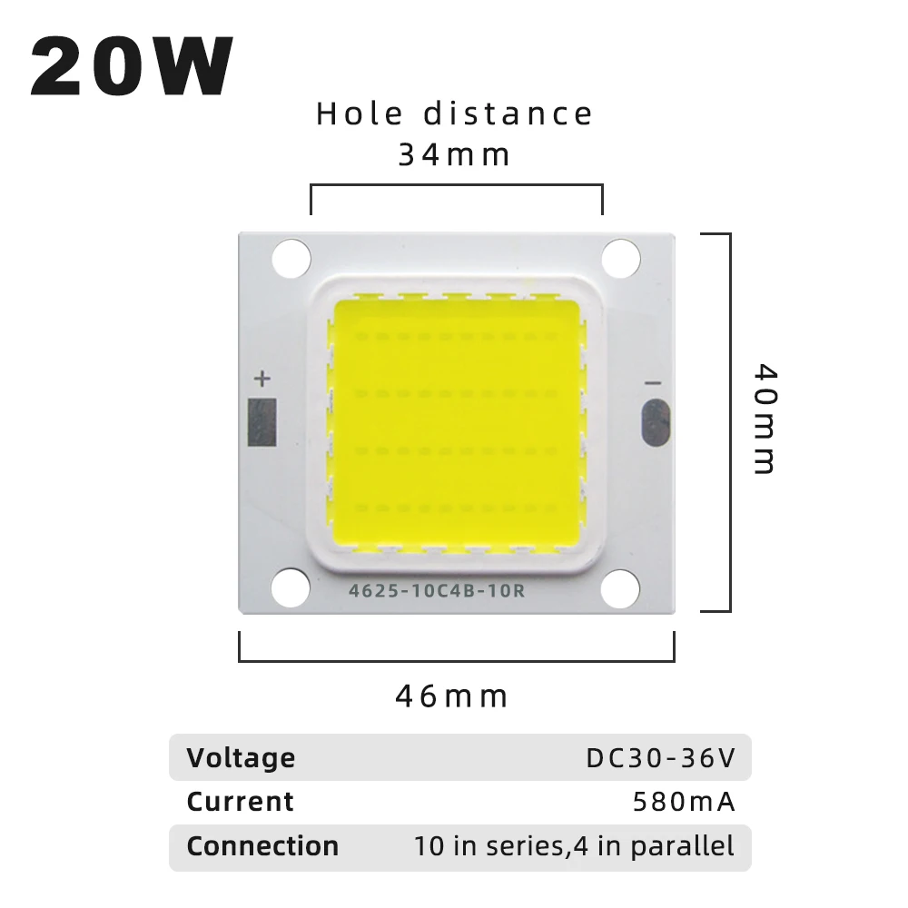 10 шт.лот DC30-36V высокой яркости SMD светодиодный чип 20 Вт 30 Вт 50 Вт 70 Вт Высокая мощность LED COB Bead для прожектора заливающего света Прожектора