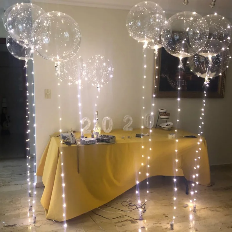 Светодиодные шары с палочками и ручкой, светящиеся Прозрачные гелиевые шарики, украшения для свадьбы, дня рождения, Детские светодиодные шары