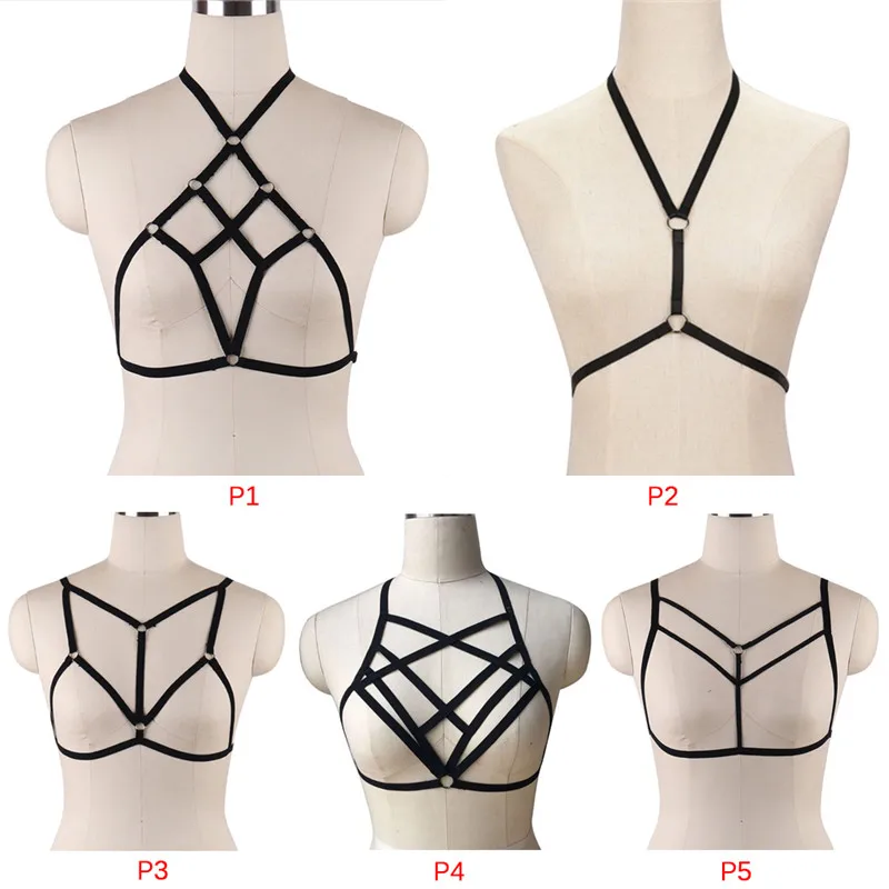Женский Готический сексуальный эластичный укороченный топ с вырезами, бюстгальтеры, эротическое белье, бюстгальтер, бюстье с ремешками, бандажный бюстгальтер черного цвета