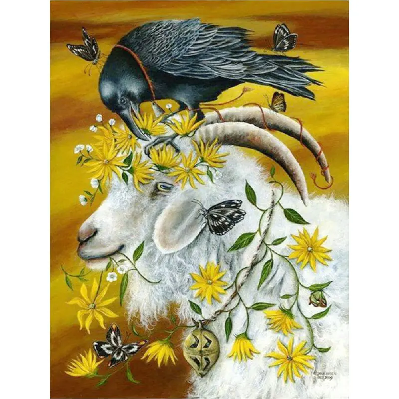 5D алмазная живопись сделай сам, вышивка крестиком, овечка и ворона, Хрустальная вышивка, алмазная вышивка, узор, полная Алмазная мозаика, живопись