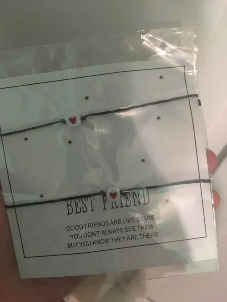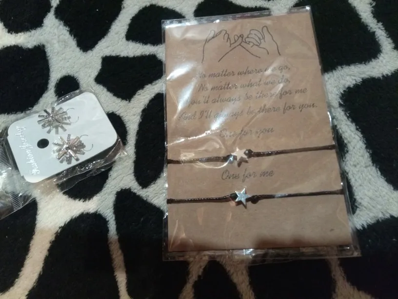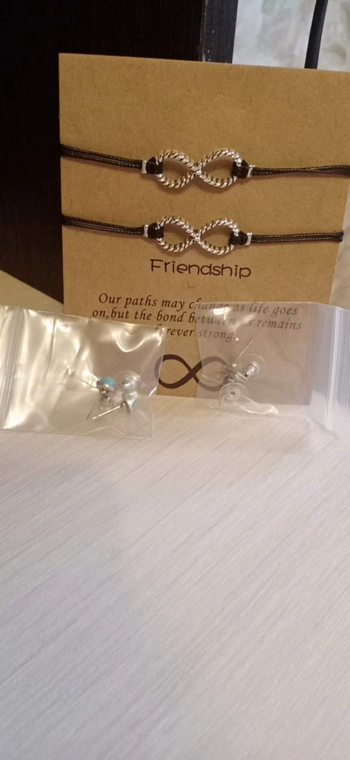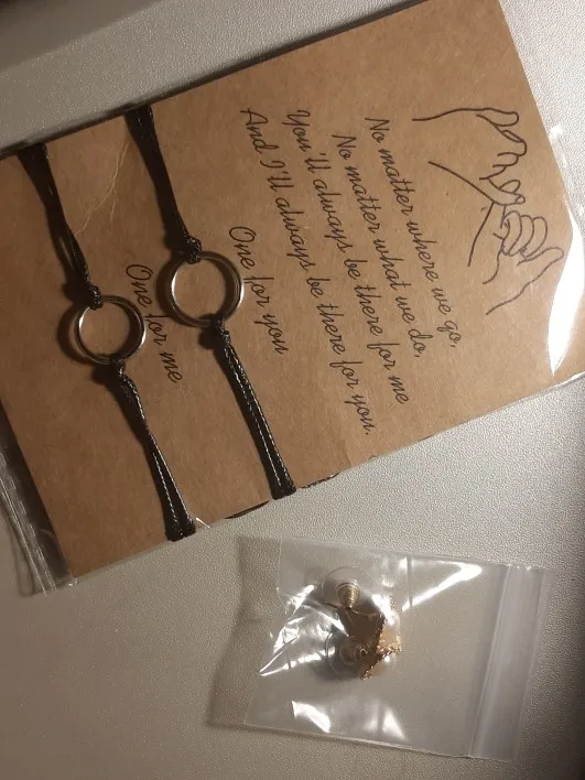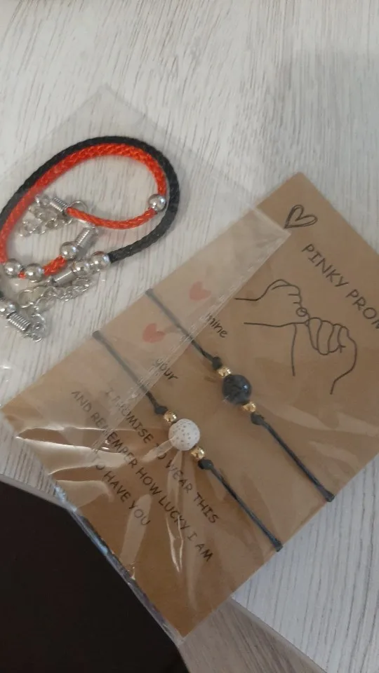 Заказ пришёл быстрее чем писали в отслеживании, боялась что товар не придёт к нашей с парнем мини годовщине, но сегодня я получила браслеты и завтра будет наш праздник!) Продавец положил подарок, серьги гвоздики, очень приятно) спасибо большое, буду заказывать ещё!)