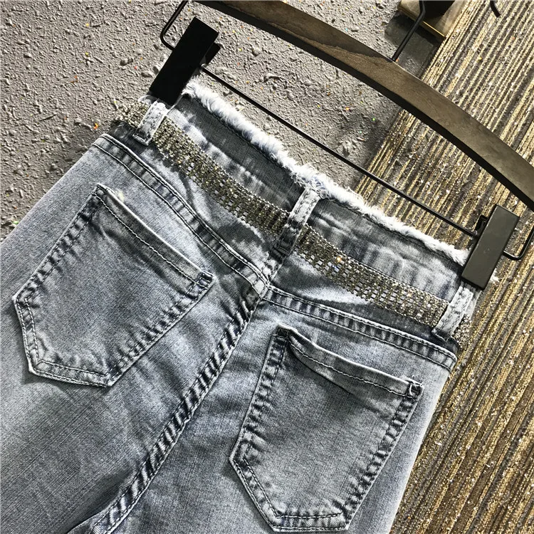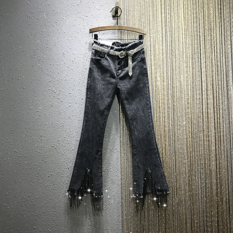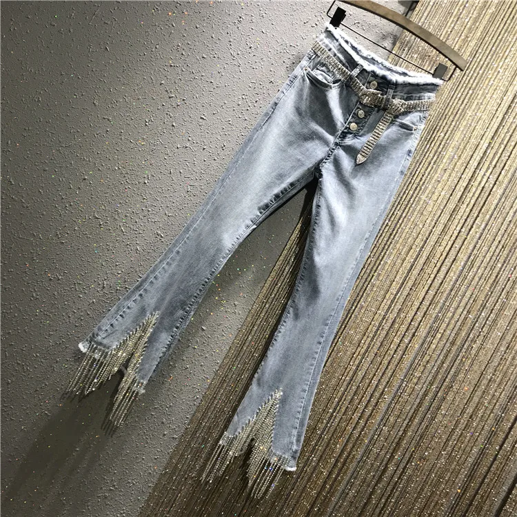 Женские джинсы с завышенной талией и бахромой, весенне-летние облегающие брюки до щиколотки