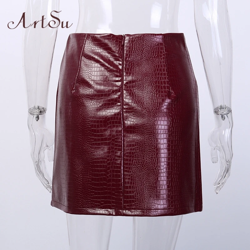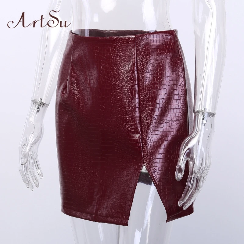 Женская юбка из искусственной кожи Artsu, черная мини-юбка с разрезом, Клубная одежда, юбка с высокой талией на лето, ASSK70159