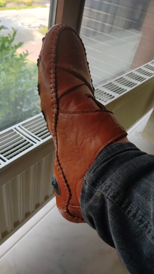 Мужские кожаные кроссовки, дышащие легкие Мокасины, ручная работа, ...