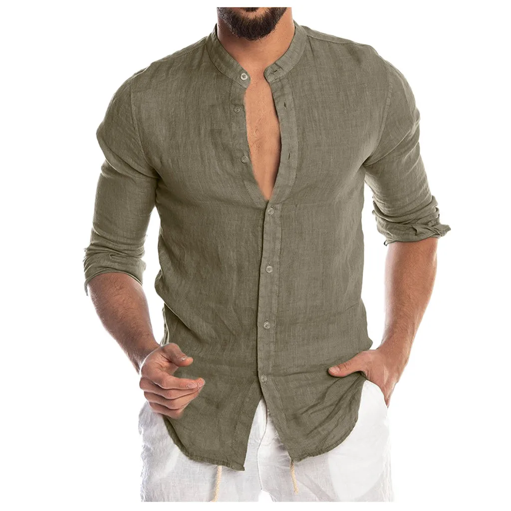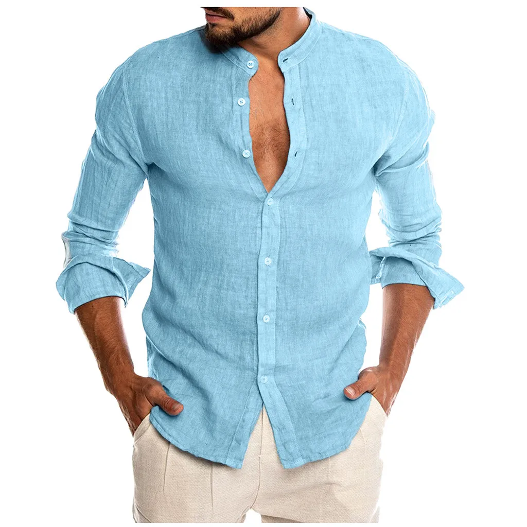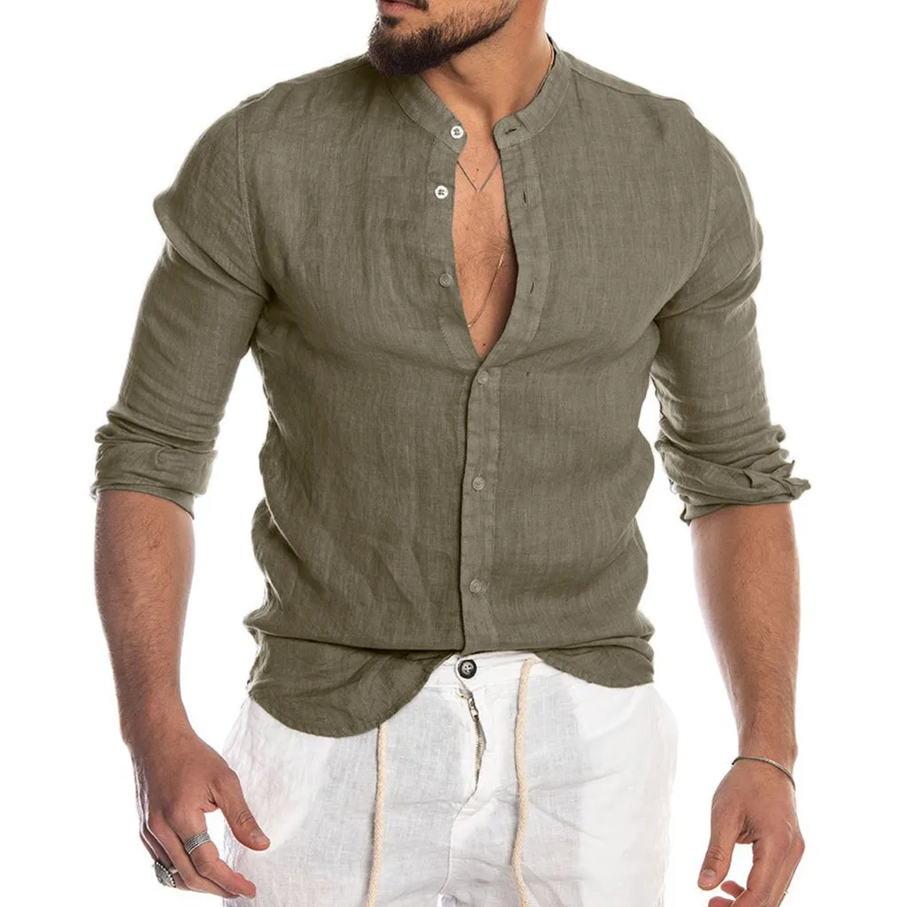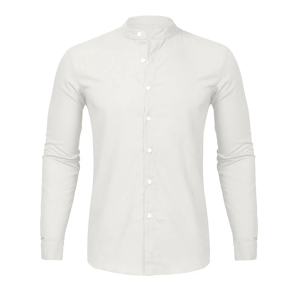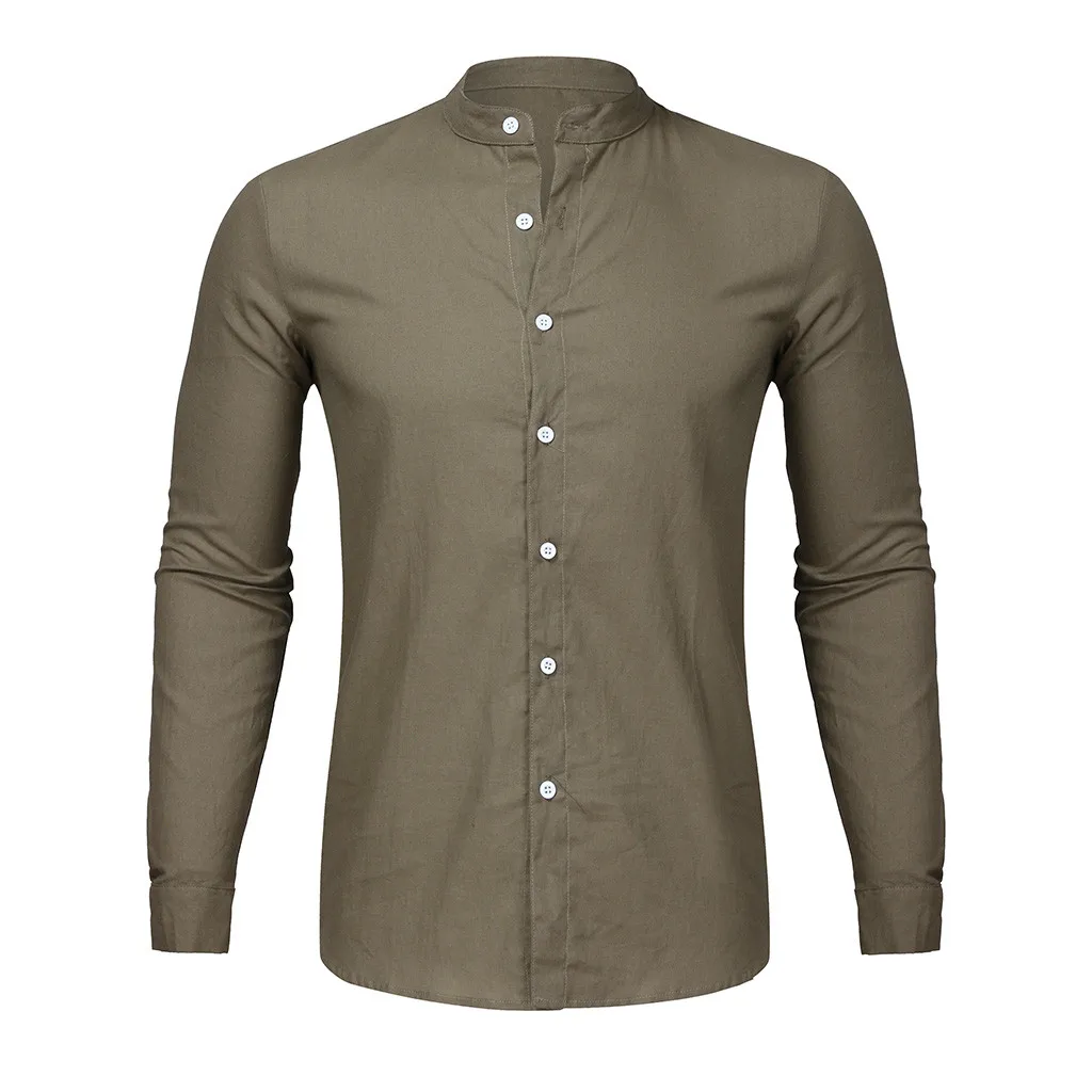 Мужские рубашки с длинным рукавом мужская Однотонная рубашка с воротником-стойкой, повседневная приталенная блузка больших размеров, рубашка с капюшоном мужская