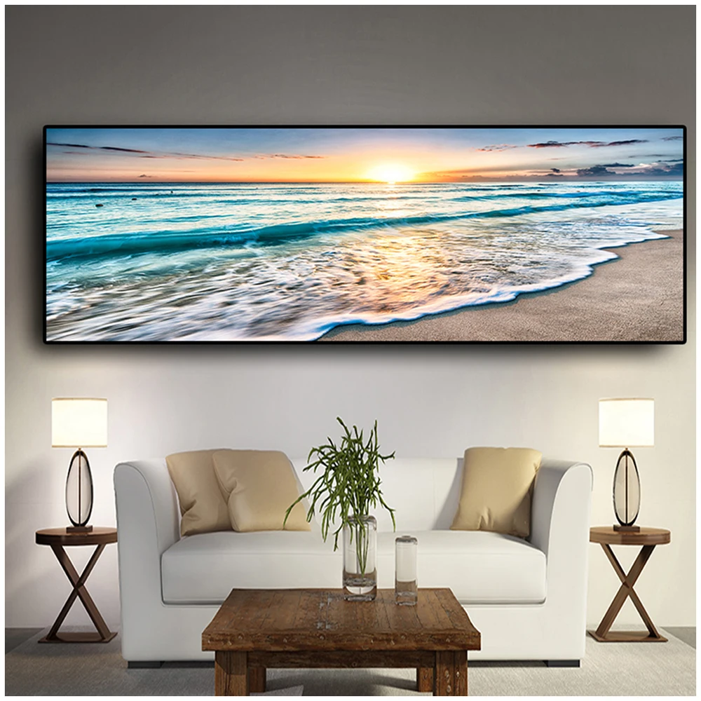 DIY Алмазная вышивка закаты Природный пляж 5D алмазная живопись пейзаж мозаика настенная картина плакат искусство домашний декор