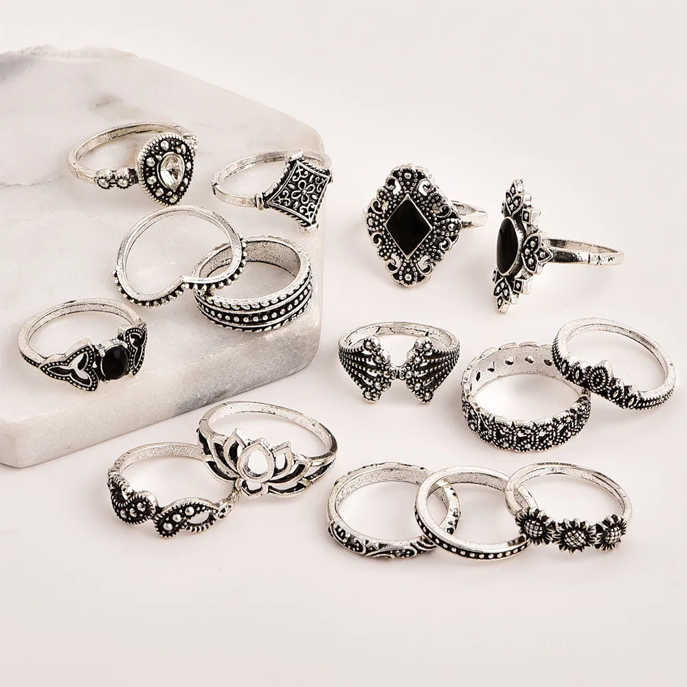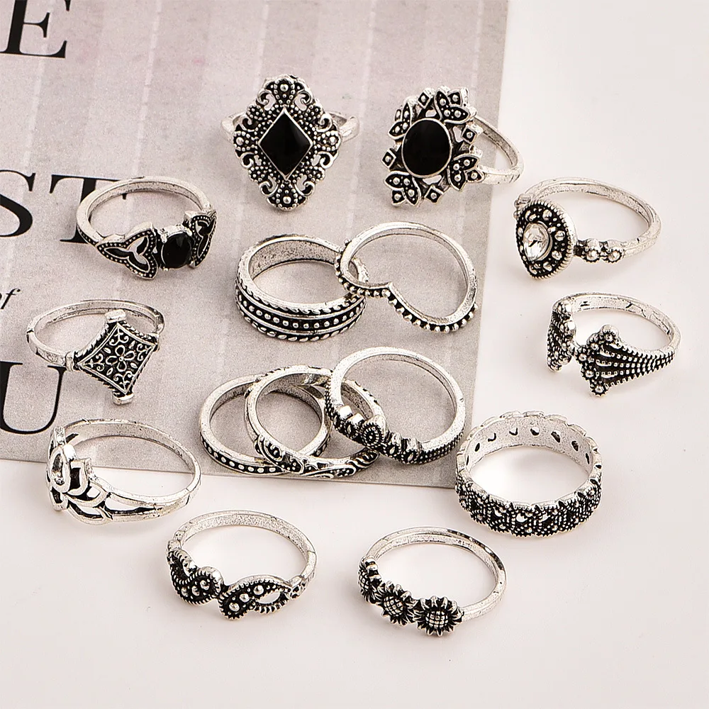 Кольцо женское в винтажном стиле, набор из 15 предметов, кольцо в б...