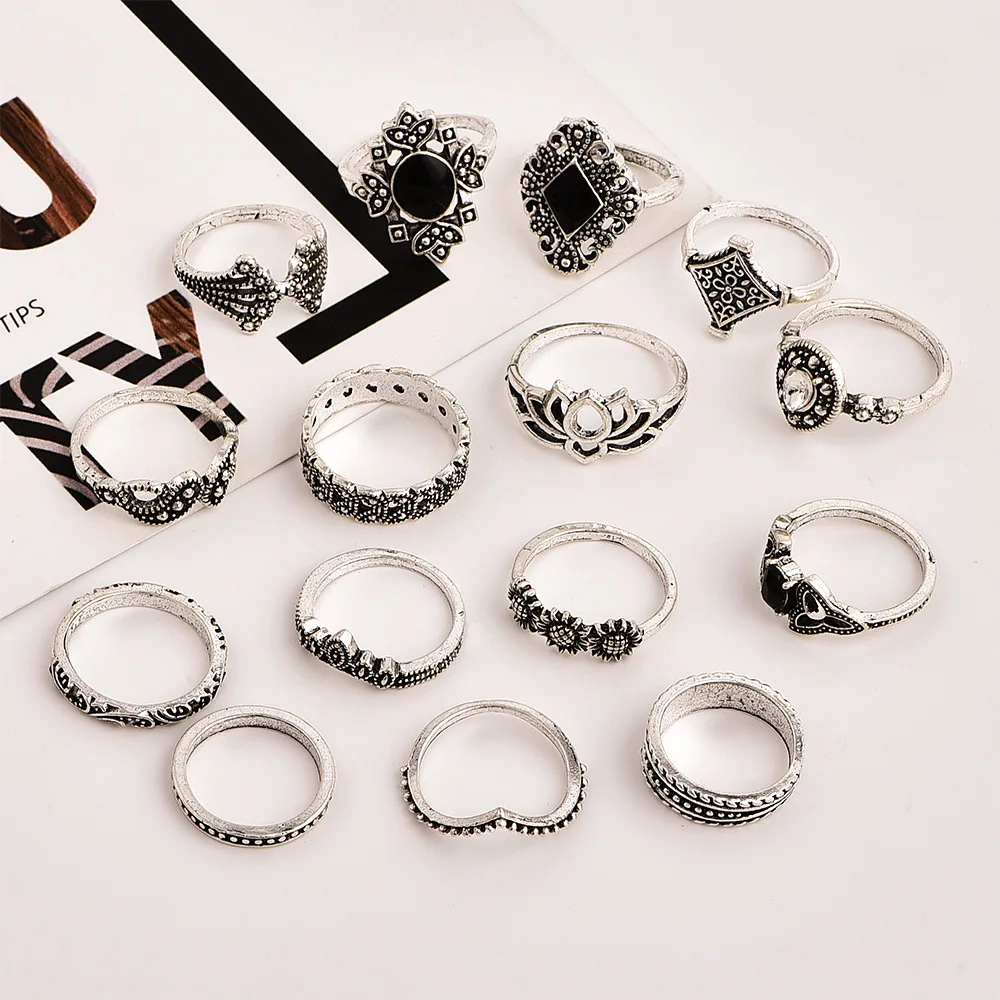 15 шт.компл., модный винтажный набор колец для женщин, Boho Femme, ...