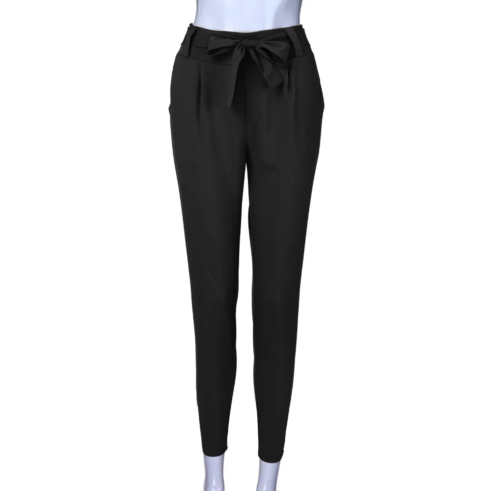 Брюки-карго женские с завышенной талией светильник брюки-султанки, женские повседневные брюки-Палаццо с бантом, элегантные формальные офисные штаны, P3