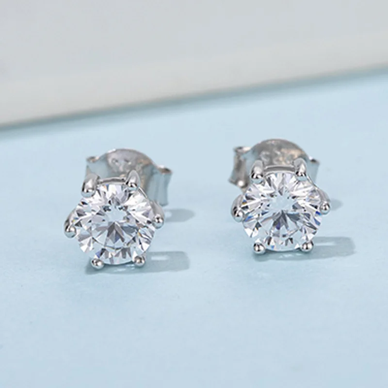 Женские серьги из серебра 925 пробы, Круглые, сверкающие, 1 карат, ...