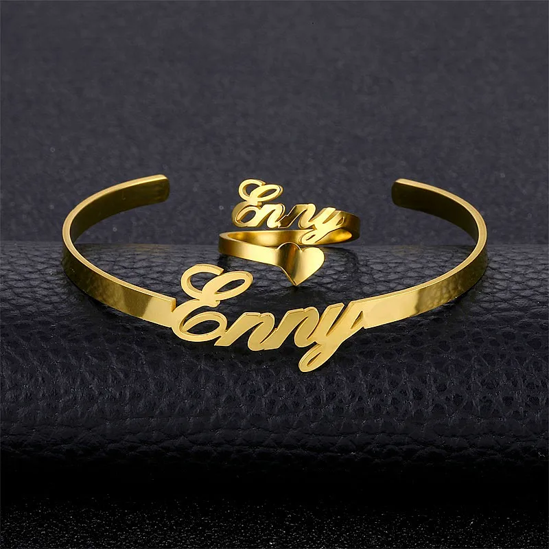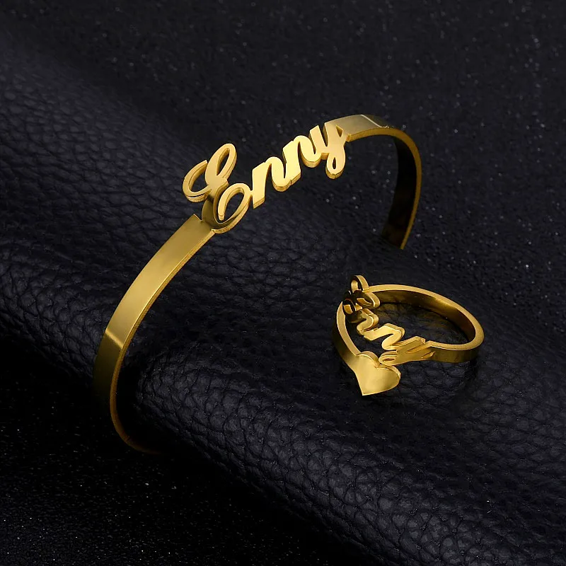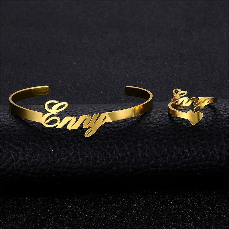 Браслеты на заказ, браслеты, кольца для женщин, девушек, золотого цвета, ювелирные наборы, нержавеющая сталь, персонализированные, любые буквы, название