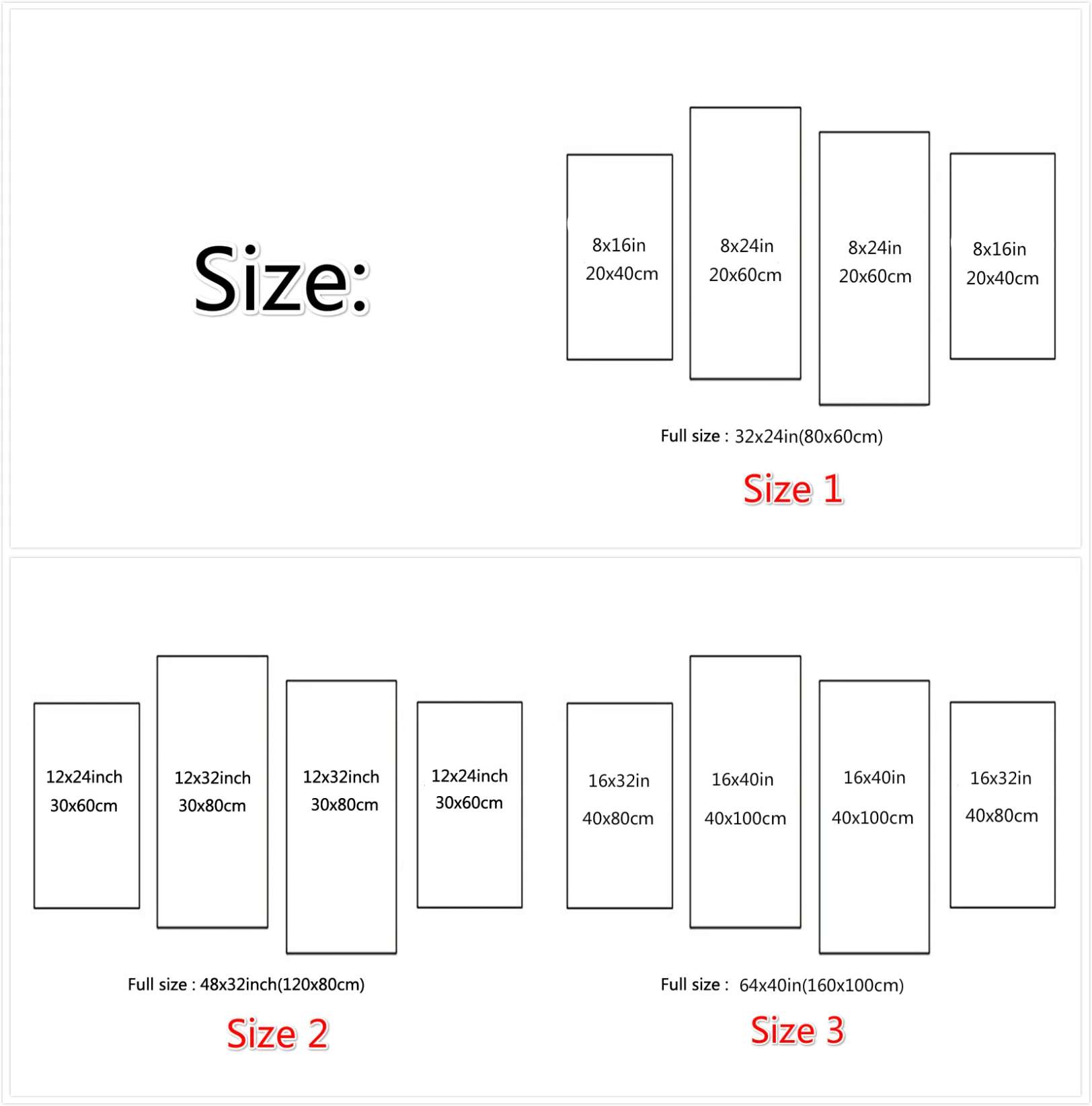 Размер 1:20x40cmx2,20x60cmx2 (8x16inx2,8x24inx2)