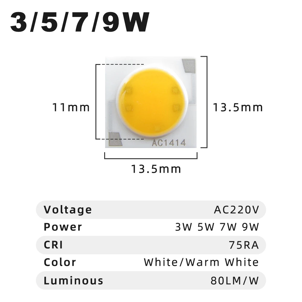 10 шт.лот 3 Вт, 5 Вт, 7 Вт, 9 Вт, 12 Вт, 15 Вт, искусственные светодиодные чипы AC220V COB AC1414 AC1917, светодиодный источник света для поверхностного освещения, светодиодные бусины для точечного светильника