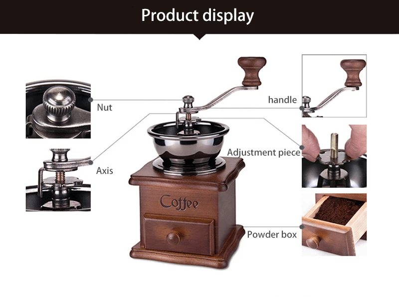 Ручная кофемолка, ручная Классическая Мини-Ретро деревянная кофейна...