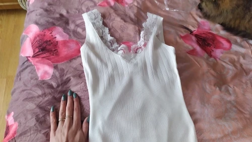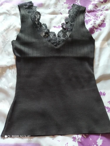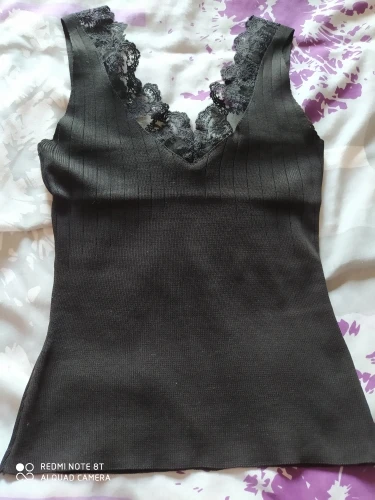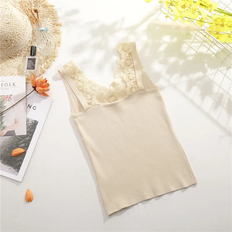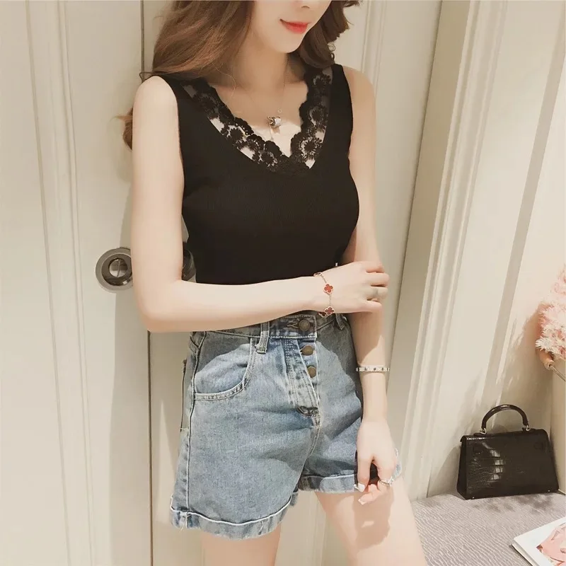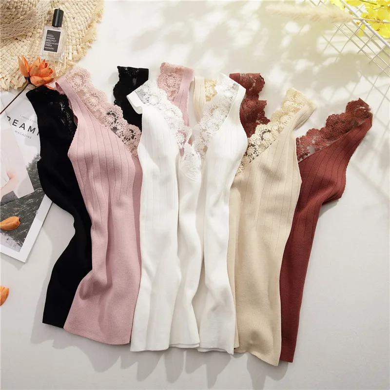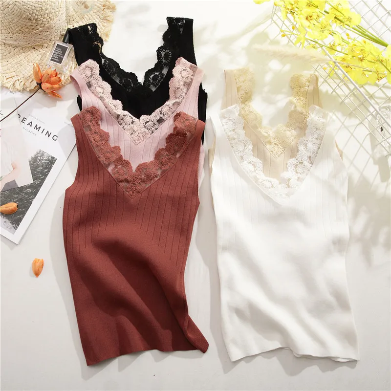 Майка женская кружевная, трикотажная, с V-образным вырезом, эластичная, лето, 2021