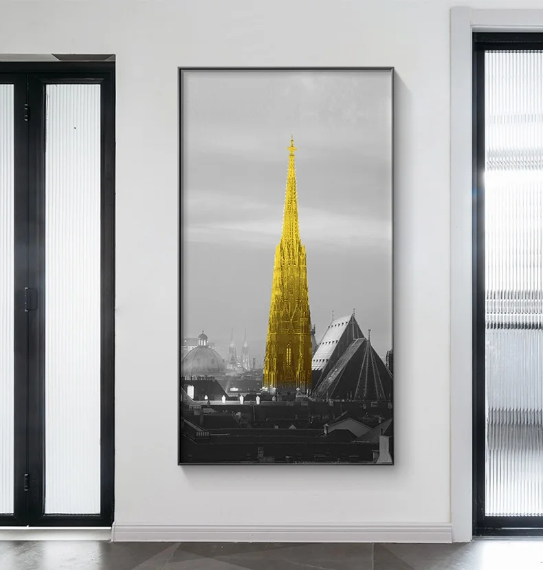 Современные достопримечательности, черные, желтые, золотые холсты, постеры и печать, уникальные настенные художественные пейзажи, картины для гостиной, спальни