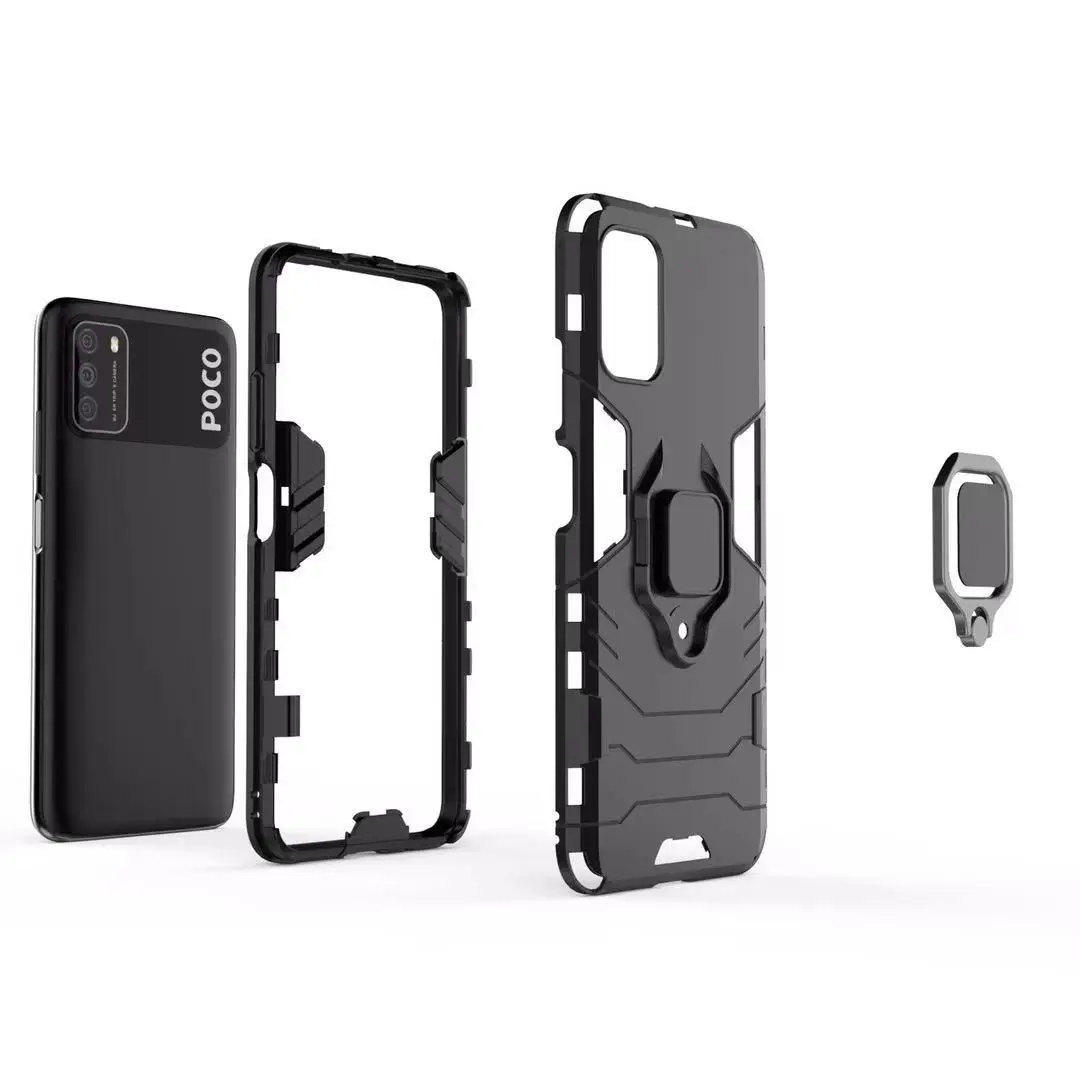 Чехол для Xiaomi Poco M3, армированный чехол Poco X3 NFC с кольцом ...