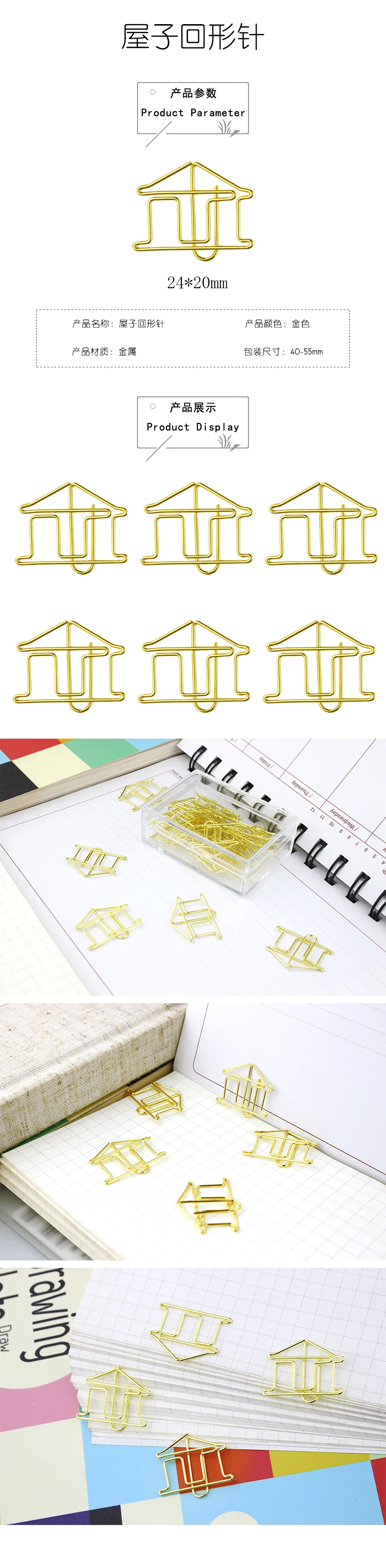 Золотой дом Скрепка форма дом булавка золотые офисные принадлежности папка канцелярские скрепки офисные аксессуары Klips Скрепка