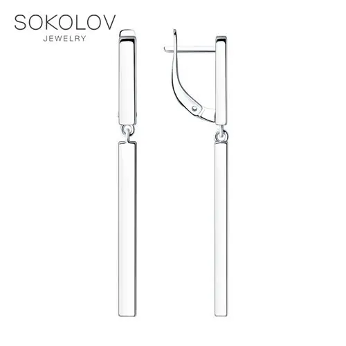 Серьги SOKOLOV из серебраБезупречность минимализма, классики и стиля. Эти серебряные серьги созданы сделать идеальным каждый ваш образ. Лаконичный дизайн, прямые линии, отсутствие сложных декоративных элементов и абсолютно ровная поверхность украшения делают его ювелирным маст-хэвом вашей шкатулки с драгоценностями. Никогда ещё торжество геометрии не было таким очевидным.