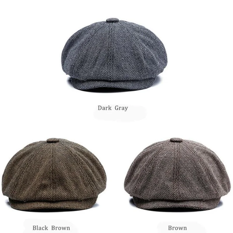 Кепка газетчика унисекс, твидовая восьмиугольная шапка в стиле ретро, плоская кепка, для мужчин и женщин, Осень-зима