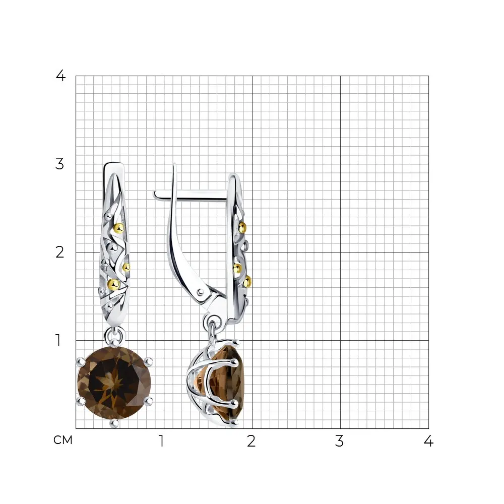 Серьги SOKOLOV из золочёного серебра с раухтопазами, Серебро, 925, Женские, Серьги 2022 тренд, Оригинальная продукция