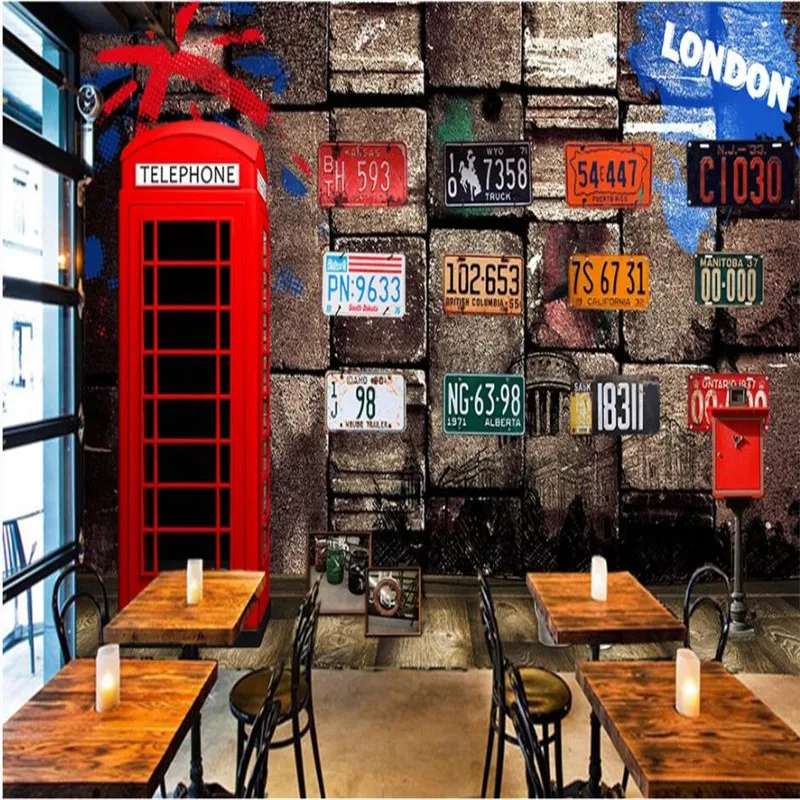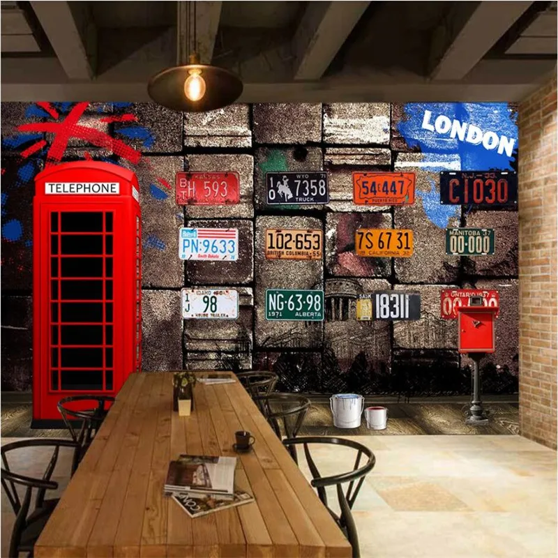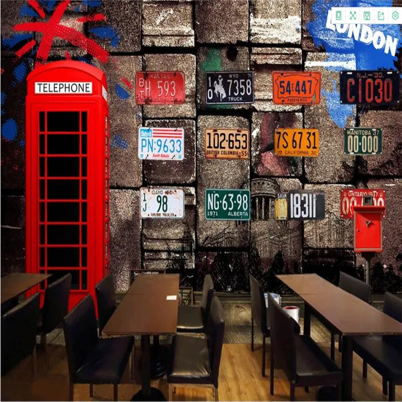 Британский стиль ретро ностальгическая красная телефонная будка номерной знак фон Настенные обои бар ресторан кафе настенная бумага 3D