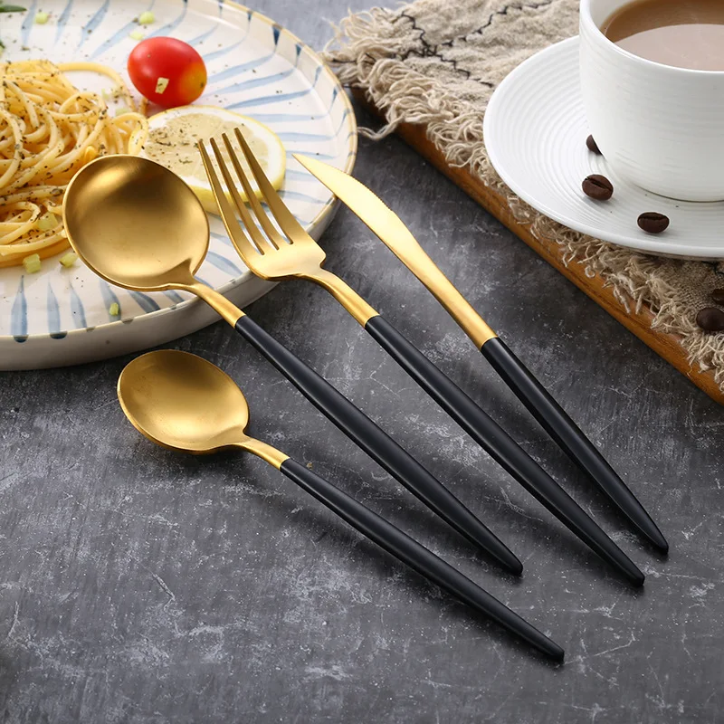 Высококачественный матовый 1810, черное золото, серебро, белый, розовый, нержавеющая сталь, посуда в западном стиле, нож, суповая ложка, вилка для торта, палочки для еды, набор для безопасности в посудомоечной машине