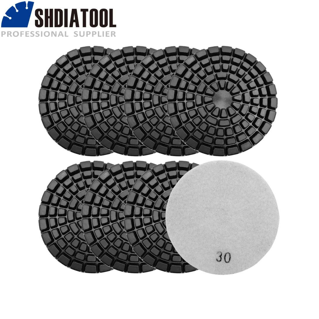 Шлифовальные диски SHDIATOOL, 8 шт., утолщенные Алмазные полировальные диски из смолы для бетона, 100 мм4 дюйма, зернистость #30, для Бетонного Пола, возобновления