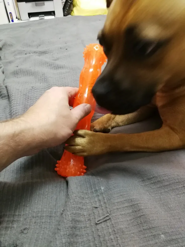 Игрушка для щенка выглядит прочной, щенку понравилось с ней играть. Рекомендую.