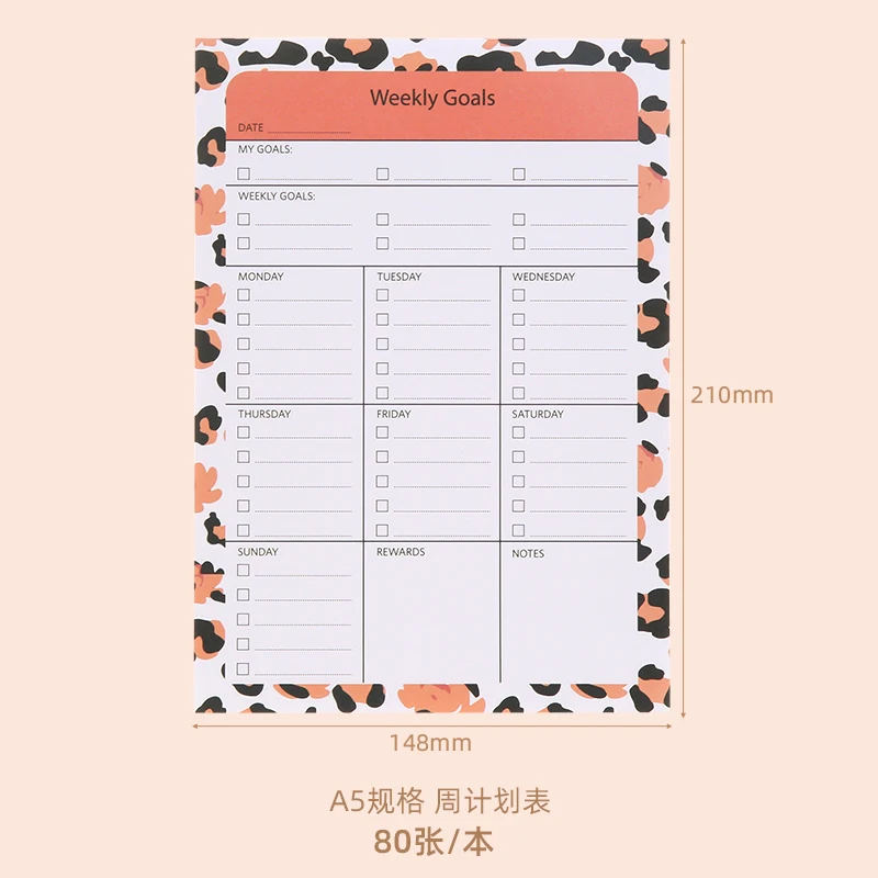 Блокнот-планировщик с леопардовым принтом, еженедельный блокнот с целями, бумажные заметки, план недели, аксессуары для планировщика, учебный планер, A5