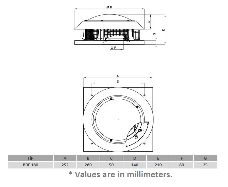 * Горизонтальная модель вентилятора с радиальной крышей.